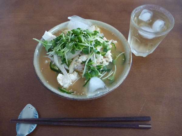 これ一杯でたんぱく質、野菜、塩分、たっぷり。暑い朝でもモリモリ喰えます。