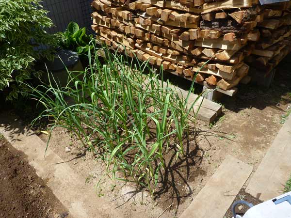 これはニンニク。だいぶ育ってきました。花芽が出たので摘みました。摘んだ花芽はお浸しでいただきます。