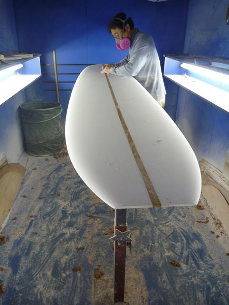 さて、先週のブログで入荷しました!とご紹介したロングボードの特注フォーム。さっそくカツさんがシェイプしてくれました。