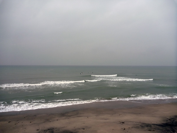 朝6時、七里ガ浜。落ちついているようにも見えますが、オーバーヘッドのワイドなセットがポンポンポンと入ってきます。あまり悩まずにもう東のリーフポイントへ移動しました。富士山がきれいです。