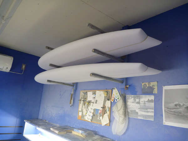 ショップのオープンは2001年。それ以来、ロングボードをベースに、フィッシュ、ボンザー、シングルフィン、ニーボード、パイポとさまざまな種類のサーフボードを作り、試してきました。
