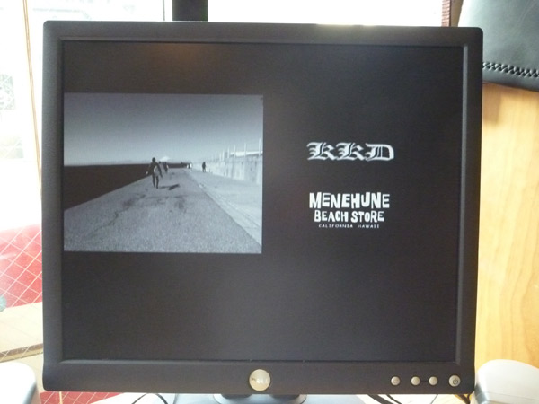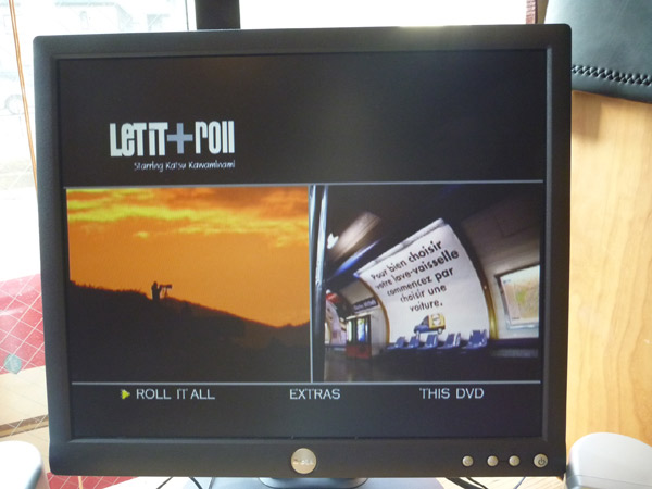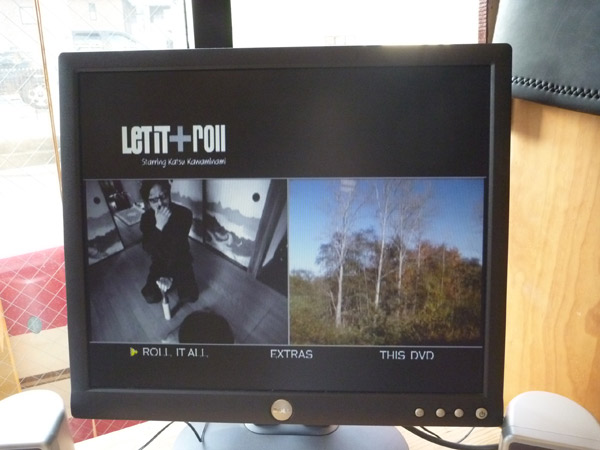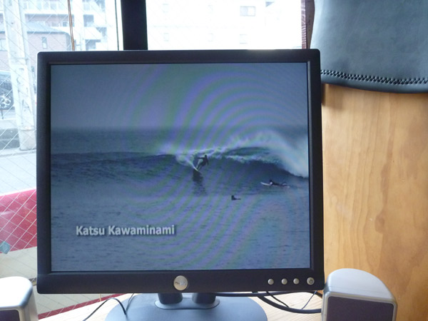 右側のテーブルの上では、カツさんのショートムービー「LET IT ROLL」を流しています。サーフトリップジャーナルなどのDVDも手がけているトシさんの映像です。このDVDもご本人が持っている以外、これ一枚だけです。時間は約24分。いつでも見られますのでご遠慮なく見たいと言ってください。