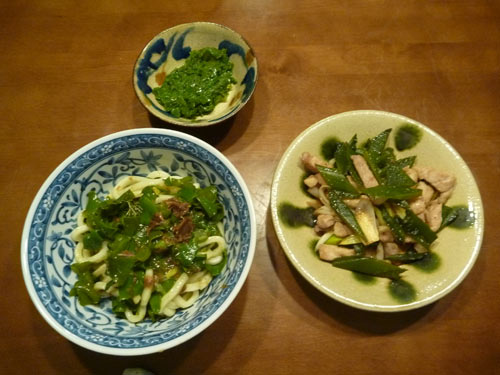 茎は豚肉と炒めるのが好きです。豚肉と茎ワカメと長ネギの炒め物です。