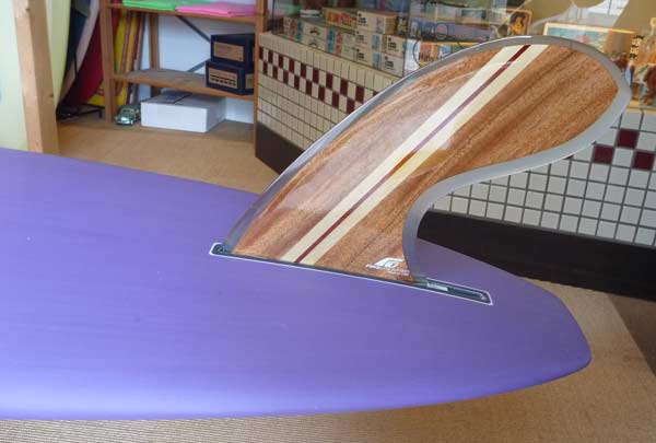 9.1の短めノーズライダーから、9.6まで散々使いました。重いクラシックなロングボードばかりでなく、軽めのクラシック系のボードにつけるのも面白いのです。