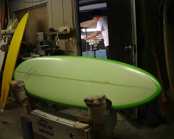 出来上がってきたばかりの6’8”MINI、なんだか久々に乗りたくって触りまくってます。思えばずっとロングボードばかり乗っていた私を短いボードに乗れるようにしてくれたのがこのMINIでした。