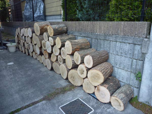 今朝、東北から薪にする玉切りの丸太が届きました。頼んだのは1トンでしたが、なんだかもっとありそうです。今回は他の広葉樹は混じらず、ナラとクヌギのみ。緻密なので火持ちがいい薪になってくれます。