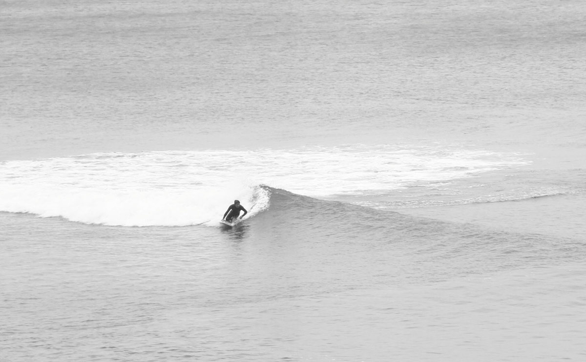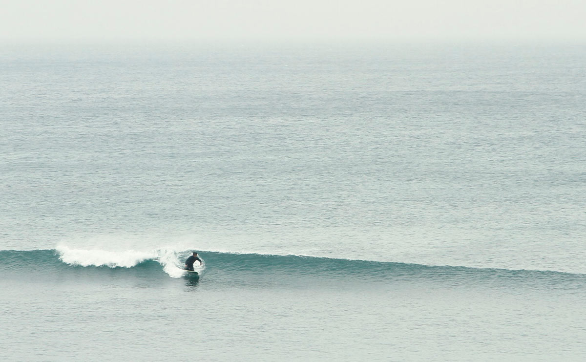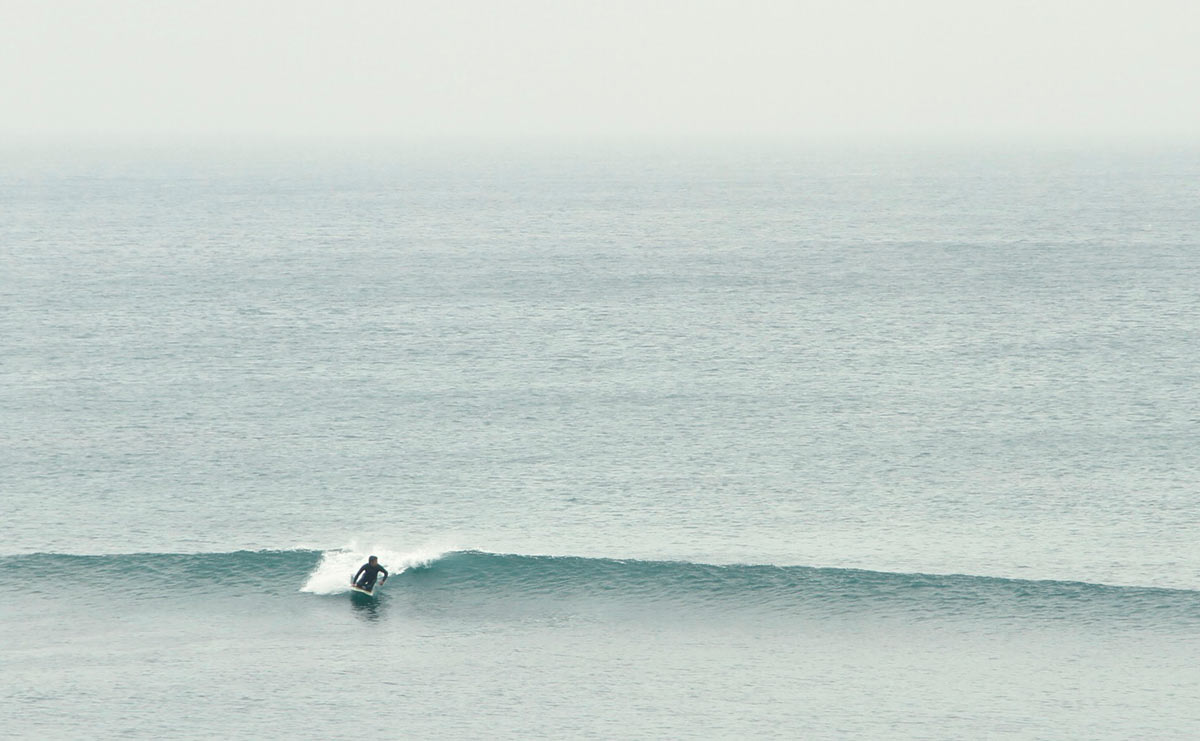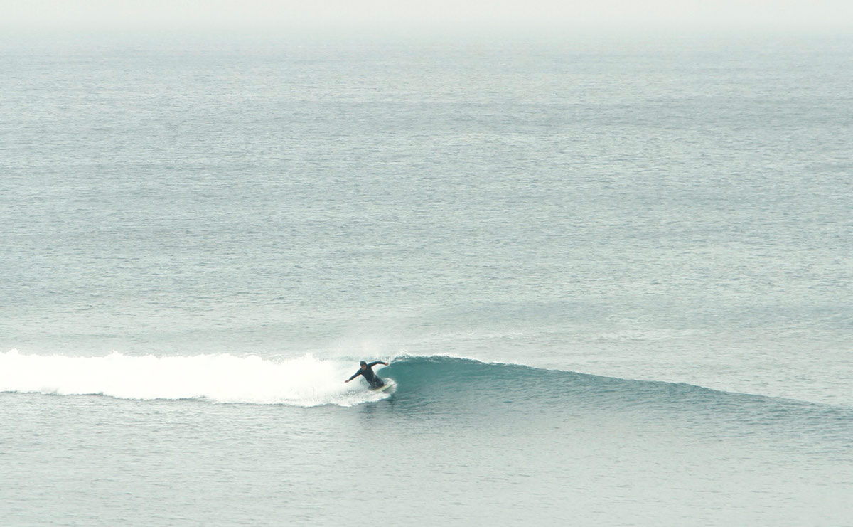 面白いのはツインフィンです。ブギーはフラットなボトムにダウンレールですが、波のフェイスを走りながらでデッキを踏み込んでいくと、なんとも言えない独特のレスポンスが返ってきます。