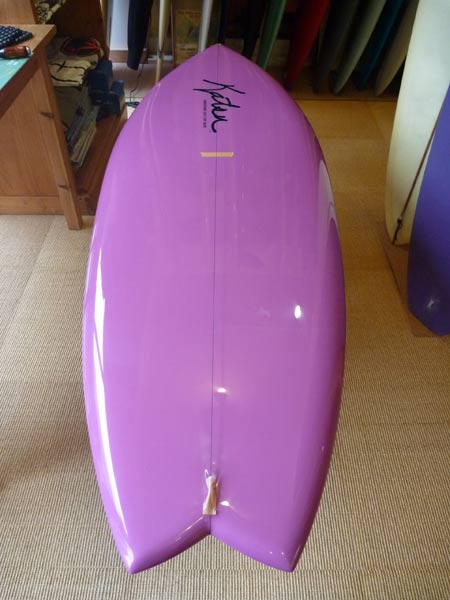 レールエッジが強調されるとニーボードのところで書いたようにデメリットもありますが、クリーンなムネ~サイズの波で乗ったら、かなり面白いに違いありません。