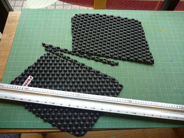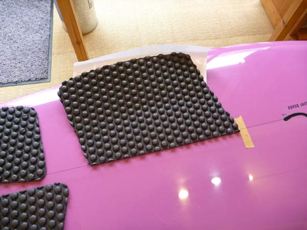 パッドはあらかじめ切って幅を調節します。このニーボードは幅が23インチありますが、オーストラリアの二ボードはもっと幅が広いんですね。(パッドはオーストラリアのパークスのものを使っています)