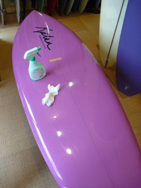 ジョシュ・ホールのロングボードも良さそうです。ボトムのコンケーブとレール、テールはダブルコンケーブでVEE、エッジがパキッと入ってこのノーズとテールはもうサンディエゴしています。前オーナーさんは8インチのシングルフィンが一番良かったようです。その辺もやっぱり…という感じです。