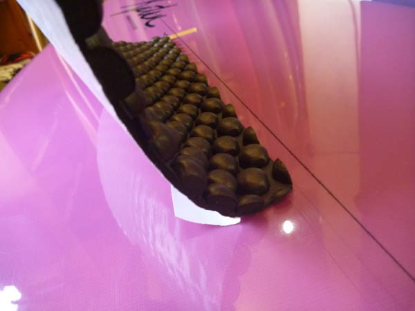 このボードにはノーズからテールまでパキッとエッジを入れてもらいました。こんな感じです。実際に触るとスゴイです。