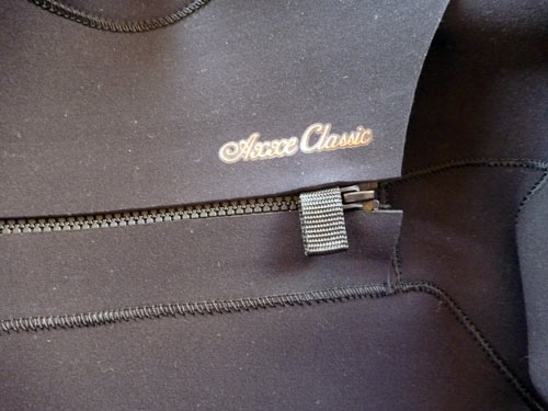 AXXE CLASSICのウェットスーツが到着しました。今回はネックインではなく、フラップが付いたノンジップタイプをお願いしました(もちろんネックインも引き続きあります)