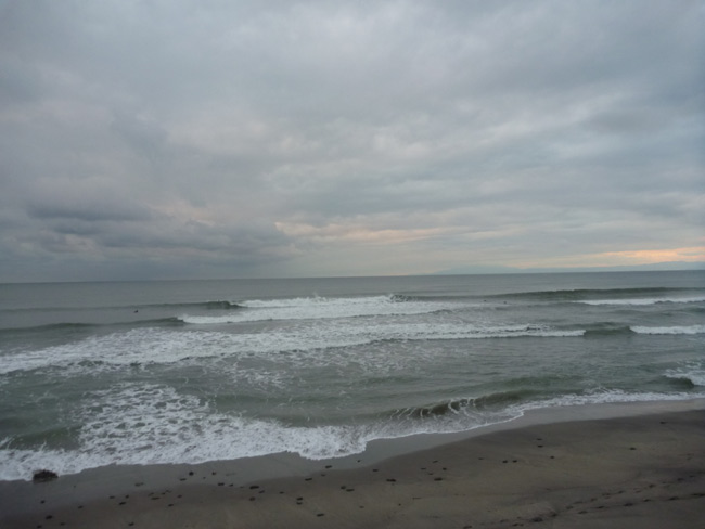 昨夜風が北に変わるのが早かったし、沖の風も北向き。波が消えてしまう典型的なパターンですが、海に着いてみればしっかりとしたいい波でした。