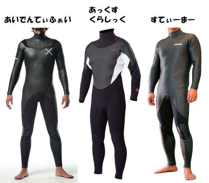 今年の夏は急性腰痛症ですっかり棒にふってしまった私ですが、これからやってくる「復活の冬」に向けてやる気は十分です。冷やすのは腰によくありませんが、だからといって海に入るのを我慢できるわけありません。でも大丈夫です。この方たちが冬の寒さから守ってくれます。
