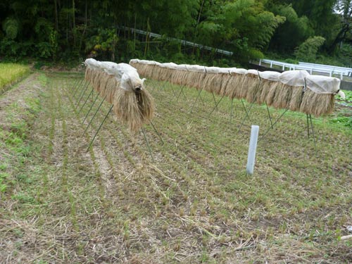 里山から続くたんぼは稲穂が実って稲刈りのシーズンです。