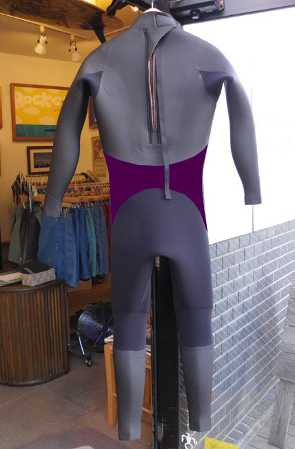 こんな感じです。私の好きなマルベリー色にしてみました。実際にはカラーの部分はもう少しお尻の方へ下がって、波待ちの姿勢でボードに跨っているところを後ろから見ると、ちょうどお尻のあたりにカラーが入って見えるように考えています。前から見ると腰の両脇に少しだけカラーが見える感じです。