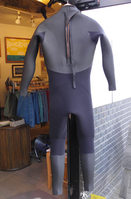 腰がちょうど曲がる位置なので、波待ちの姿勢やライディングの姿勢でかっこよく見えます。(カラージャージ仕様は3ミリネッスルフルスーツになります)