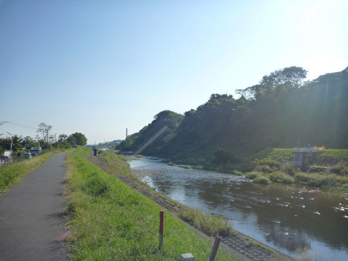 近所を流れる多摩川の支流を下流へ向かって走ります。
