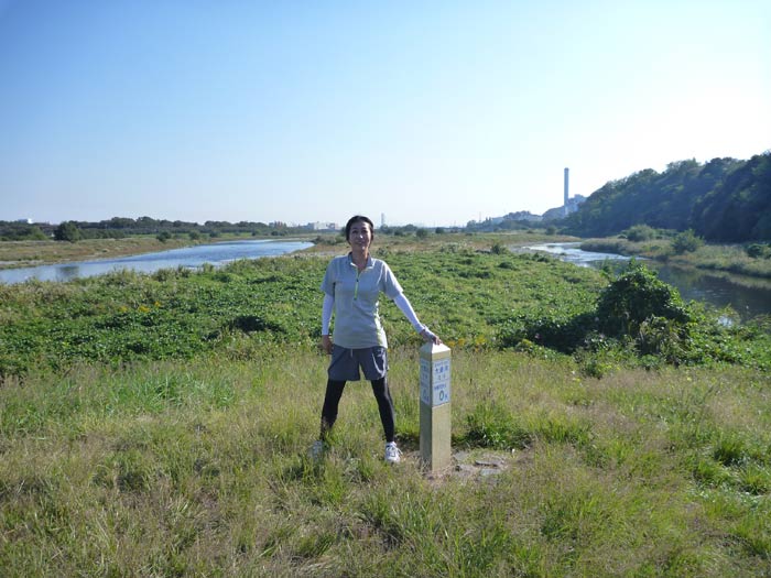 そして多摩川到着。左側に見えるのが多摩川。右側が川沿いを走ってきた支流です。