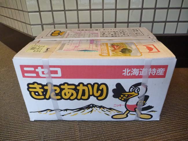 北海道のHさんがジャガイモを送ってくれました。ニセコのニッキーくん自慢のキタアカリです。