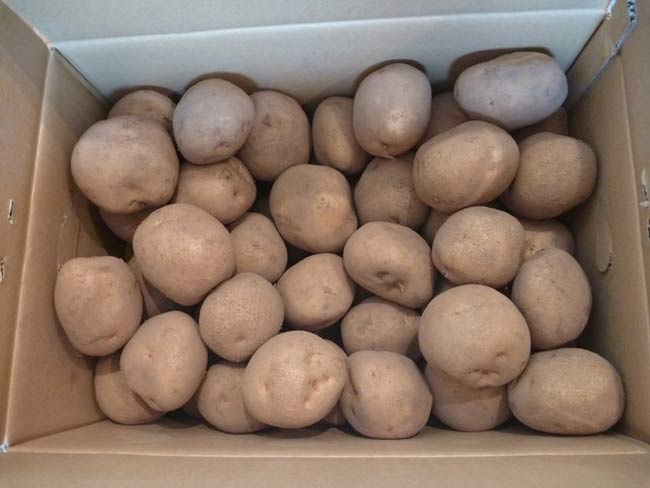 開けてみるとジャガイモがごろごろ。粒ぞろいで丸々と肥えて食べる前から美味しいとわかります。