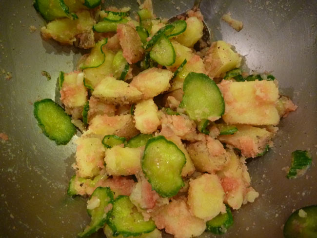 そのまま食べてもポクポクで甘くてたまりませんがポテトサラダを作ってみました。
