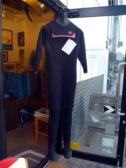 ドライといっても大げさな感じではなく、一見したところは普通のウェットのようにも見えます。一番の違いは見ただけではわからない、スーツの軽さです。通常の5/3ミリのセミドライといい勝負か、もしかしたら軽いかも。ビックリの軽さです。