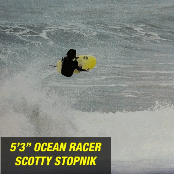 オーシャンレーサーもノーズ、テールは広めですがこうやってくらべてみるとオリジナルよりもずいぶんとノーズとテールが絞り込まれているのがわかります。長さはずいぶん違いますが浮力はおそらく同じくらいじゃないでしょうか(ハイドロダイナミカはEPSフォームですし)