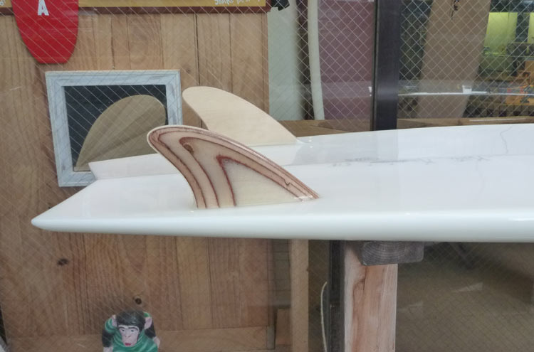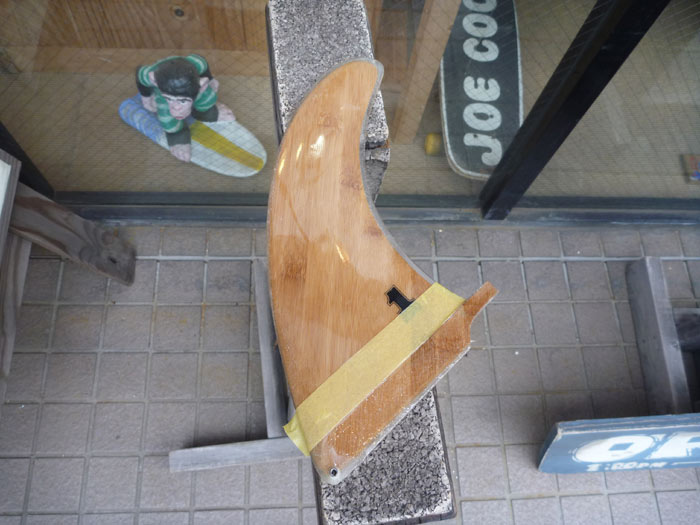 このフィンは8インチです。ワンカスタムフィンのバンブーフィン。今使っているものより1インチアップ、このために仕入れたスキップ・フライのフィンも使ってみることにします。