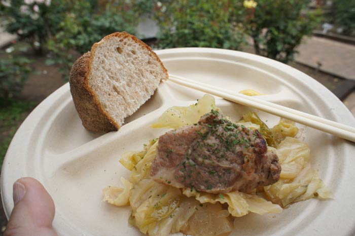 肉食系の女房はキャベツと豚肉の塩麹シチュー。石釜焼きのパン付き。これも美味しかったです。