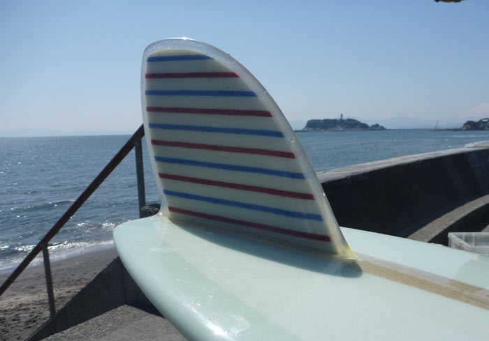 次に考えているシングルフィンは、最初に考えていた形からちょっと変わってきました。カツさんのフィッシュのバリエーションに、NUSHIと呼んでいるラウンドノーズではなくて、ロケットフィッシュ系の調子いいツインフィッシュがあるのですが、それをヒントにクラシックでちょっと変わった感じに作ってみようと思ってます。私のアタマの中にあるものは実際に製作に取り掛かってからご紹介します。