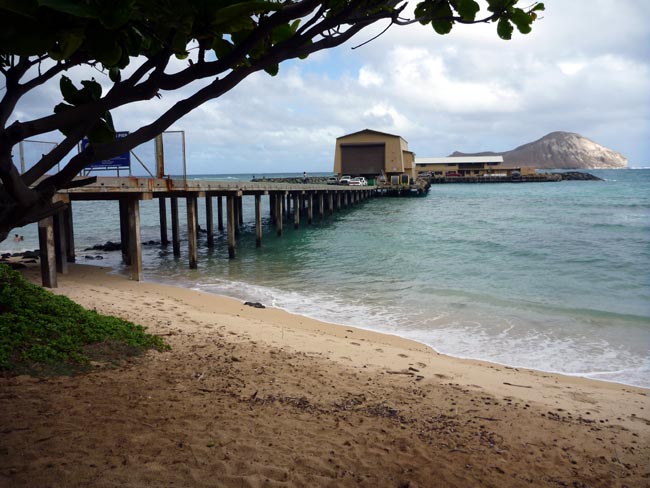 写真はハワイにもあった「ピア」です。場所は沖に見えている島がヒント。ピアの上から海亀が泳いでいるのが見えました。