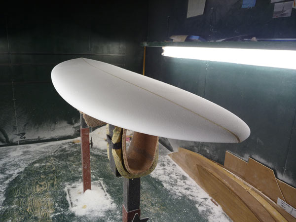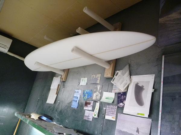 川南活さんのシェイプルームでは関西方面にお住まいのNさんからのオーダー、MINI6'8"のシェイプが完成していました。カツさんスペシャルチューンのMINIです。