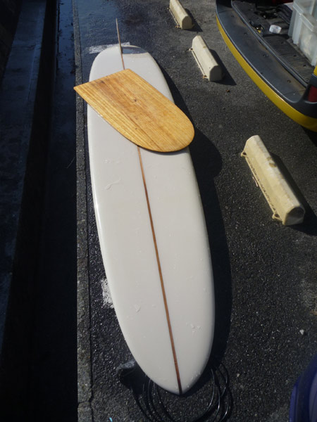朝のうちは潮が少なくて波も掘れ気味だったので5.6フィッシュで入水。今年の春に作ってから久しぶりに使いました。最初のうちは久しぶりの丸いノーズとダウンレールに手こずりましたが、乗る位置が決まると丸いノーズとレールがどんどんスピードを付けてくれて、気持ちよくドライブしてくれました。やっぱいいですこのフィッシュ。(先月KK FISHを納めた方からは、調子良くて生涯のボードにしたいですなどと超嬉しいメールをいただきましたよKKフィッシュ)クリステンソンのフィッシュとはかなり違う感じで楽しめるのです。