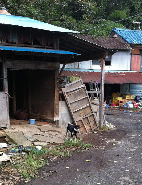 エサの藁が積まれた小屋に牛小屋、農家と柴犬の番犬。なんだかとても日本的でいい感じ。
