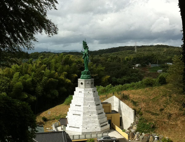 突然の巨大な物体にビックリ。巨大な千手観音です。写真だと大きさわかりにくいですが横にある車と比べてみてください。近所にこんなのがあるなんて知りませんでした。