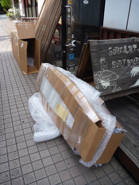 頑丈そうな大きな段ボールの箱が到着。中にはがっちりとパッキングされた新しいサーフボードが2本入っていました。