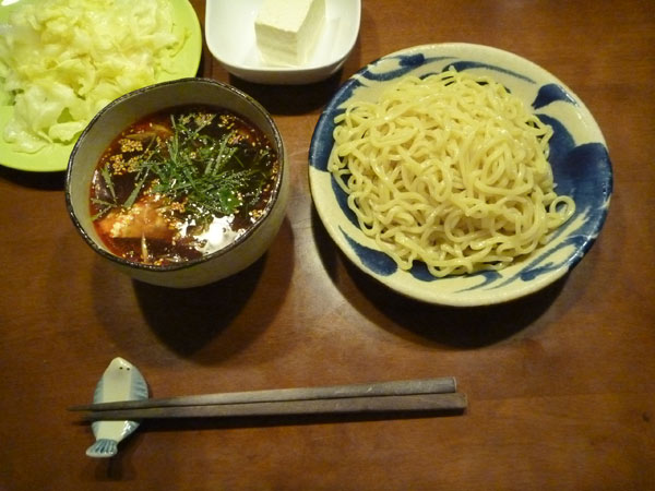 暑いので麺も漬けダレも冷たい、つけめんを作ってみました。つけ麺の麺だけがあったので、家にある材料で漬けダレを作るのがお題です。