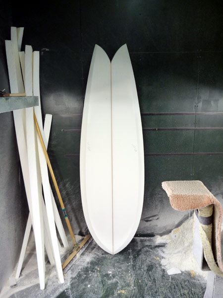 ショップのオープンは2001年。それ以来、ロングボードをベースに、フィッシュ、ボンザー、シングルフィン、ニーボード、パイポとさまざまな種類のサーフボードを作り、試してきました。