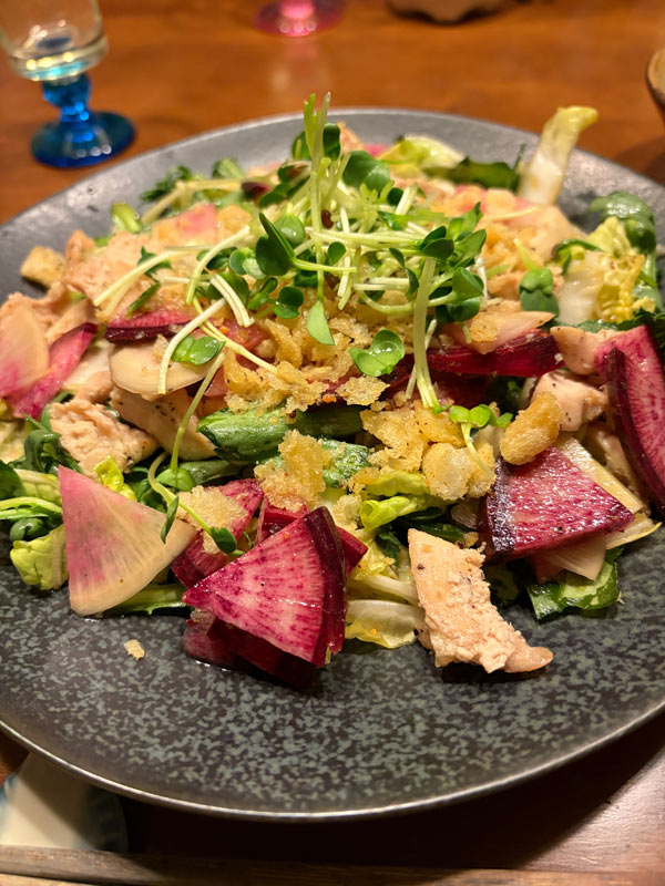 見るからに新鮮そうな野菜が棚に並べられるのを見ていたら、すっかり生でそのまま食べたいモードになってきてしまいました。それで買ったのは、白菜、春菊、紅芯大根の冬野菜たち。
