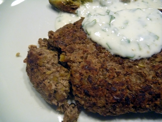 始めてで量の加減がわからず少々大きなりすぎました(笑)レンズ豆とクルミをメインに使ったハンバーグです。