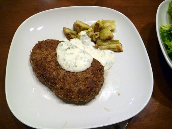 豆のハンバーグです。別にベジタリアンになろうと言う訳ではなくてただ豆が好きなんです。(卵は使ってます。)