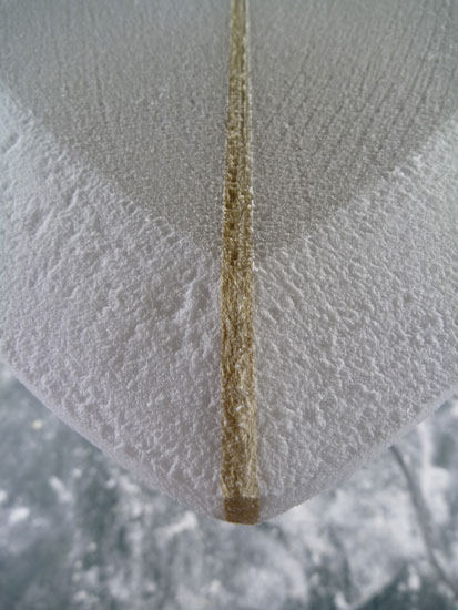 グラブレールもクールですが。水に入っているレールに注目してみてください。ストリンガーとほぼ平行にノーズからテールまでがっちりレールが入ってます。
