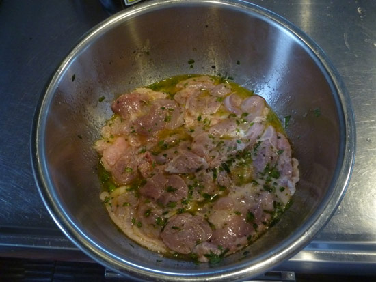 当日の昼飯も準備にも余念はありません。マリネした鶏肉はグリルしてサンドウィッチになる予定。
