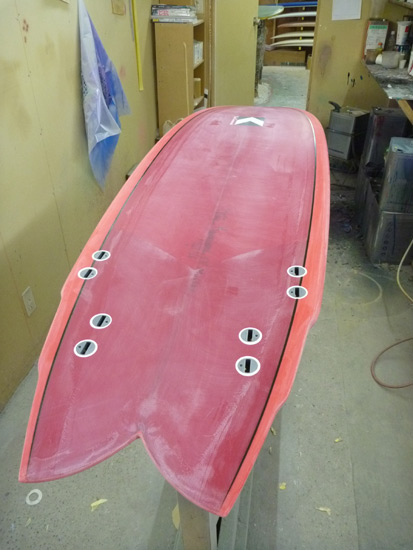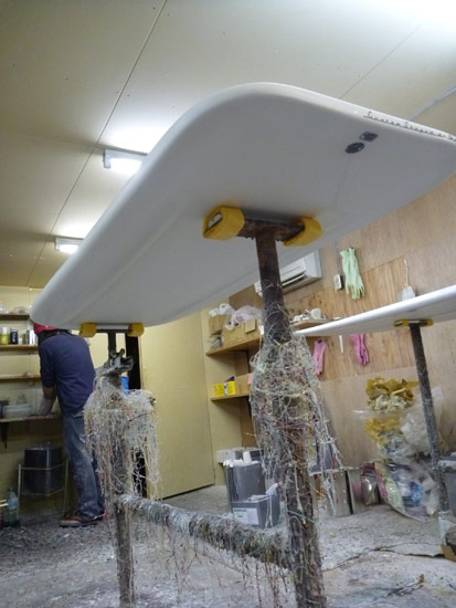 他のボードもフィッシュフライに持っていくために急ピッチで作業中です。。初乗りはみなさんでどうぞ。これはフィッシュから進化したデザインのボニート。