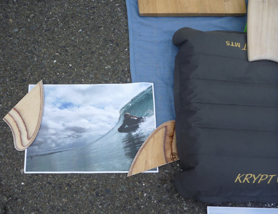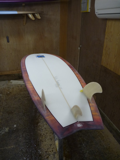 品川のシェイパーさん(あってます?)が作ったウッド製のツインフィンハル。木製ならではの重さがとっても気になりました。
