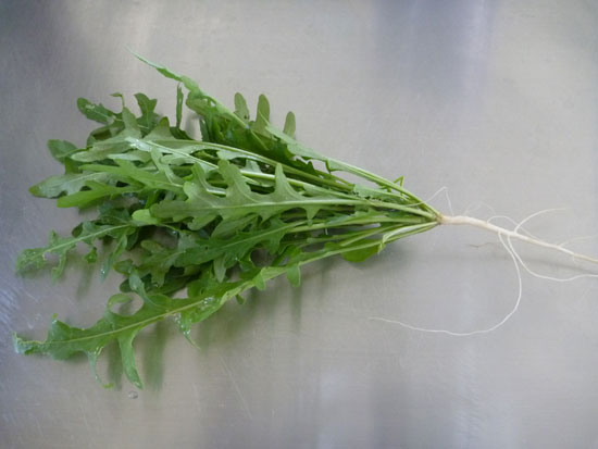 豆の脇にこぼれ種でワイルドルッコラが育っていました。普通のルッコラよりも香りも味も強いです。