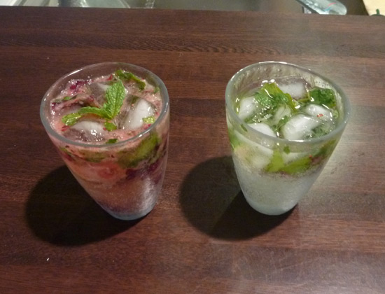 楽しい一日の締めくくりは、ホワイトラムとミント、自宅で取れたベリーの実を使った自作モヒート。