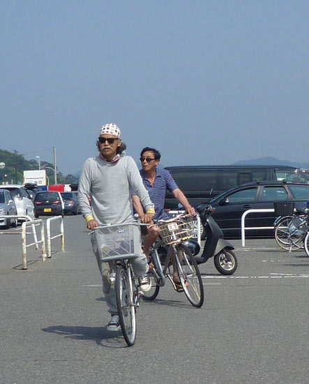 しばらくして、カツさんとサーフボードONEの豪さん登場。二台のママチャリで走ってくる様子はイージーライダーのワンシーン(笑)BORN TO BE WILDが聞えてきそう?!
