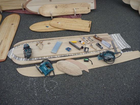 ウッドボードがたくさん出展されていました。ウッドボードをシェイプするためのツールです。アライアなどのブランクスを提供しているLEI WATERMAN BLANKS。